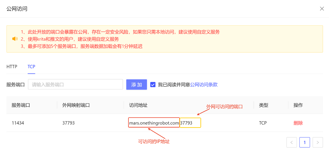 部署完成后,可以顺利获得 TCP 转发对外给予服务。如果需要独立公网IP,可以联系OneThingAI算力云团队。