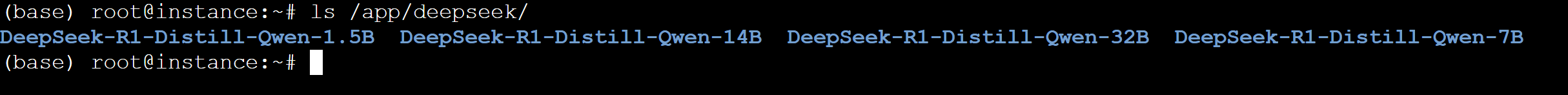结果如下,现在已经预装4款以Qwen为底模的 DeepSeek-R1 蒸馏模型