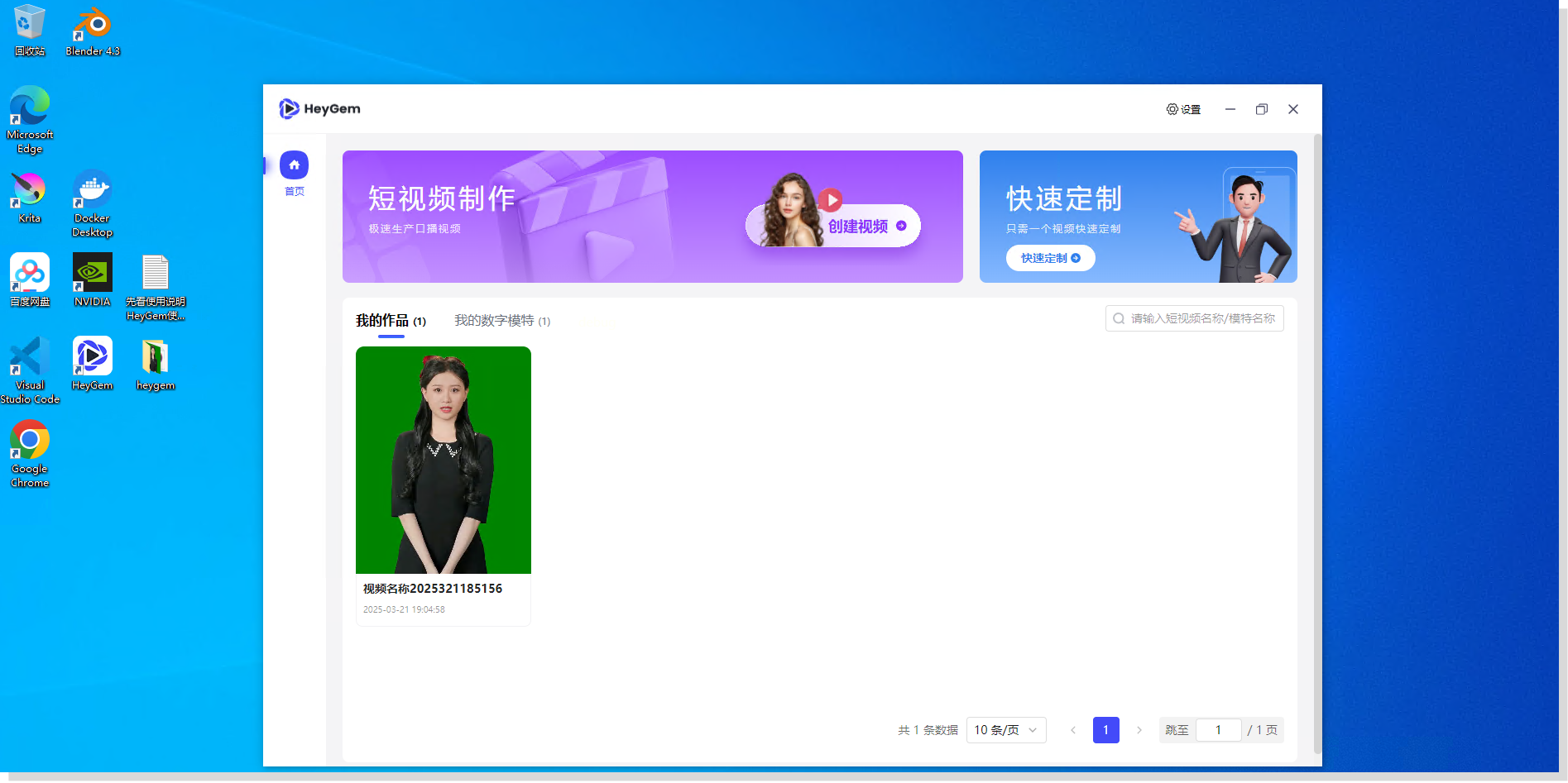 OneThingAl云主机预装NVIDIA驱动+常用设计软件,进入即享:Blender建模渲染、Krita手绘创作;内置HeyGem.ai工具,可实现1秒视频生成4K超高清AI形象。