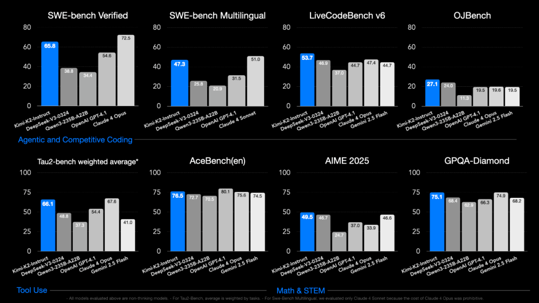 同时,由北京大学开发、用于评估 AI 大语言模型物理推理能力的基准测试项目 PHYBench 里,Kimi K2 在所有非推理模型中排名第一 。