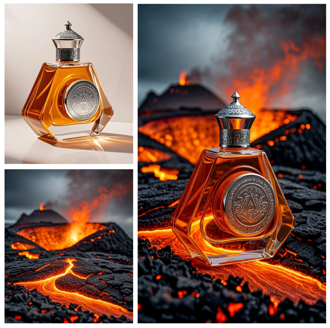 提示词:把图1的香水摆放在图2里面