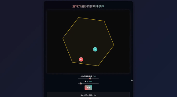 * 经典旋转六边形小球弹跳测试,物理引擎动态模拟。